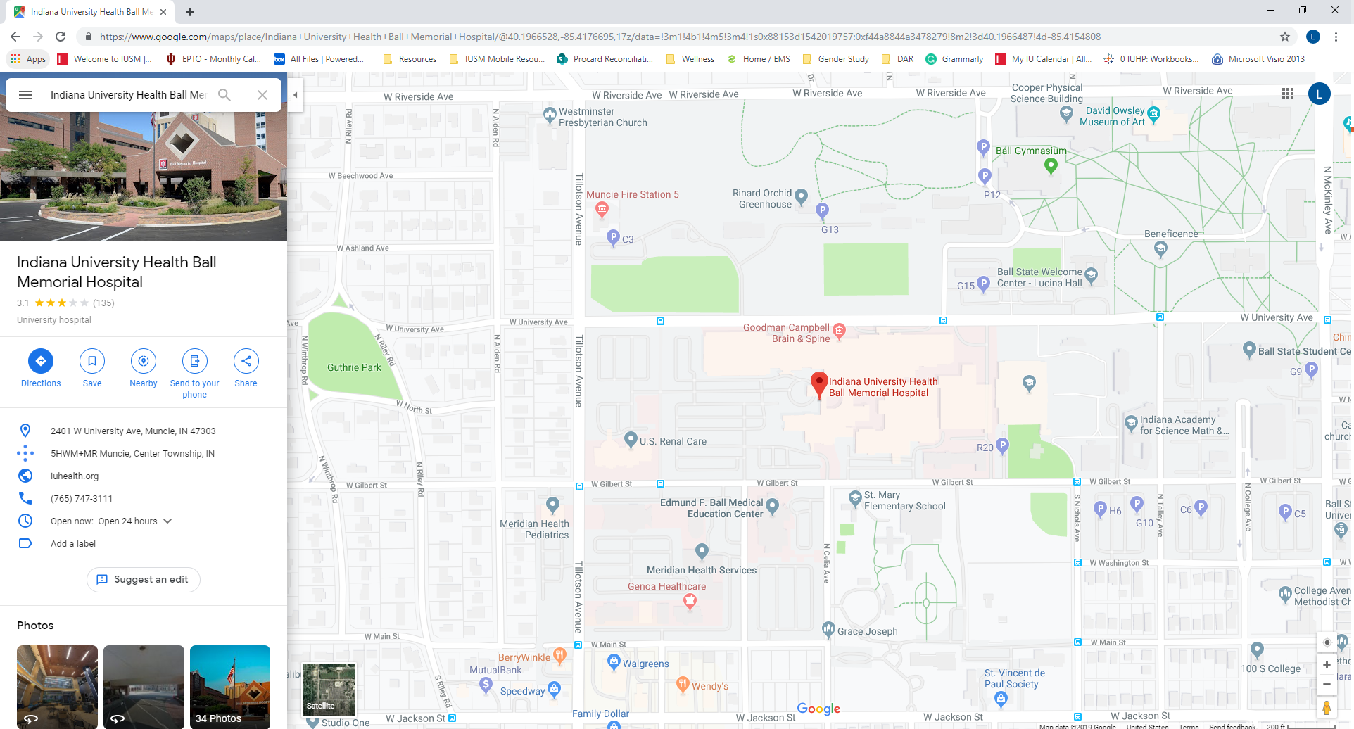 Driving directions to IU Health Ball Memorial Hospital, 2401 W