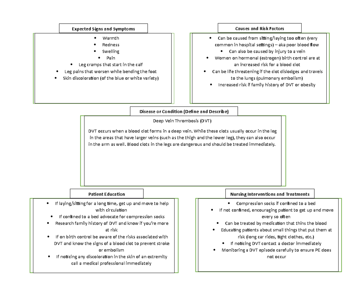 Concept Map for Pathopysiology DVT Expected Signs and Symptoms