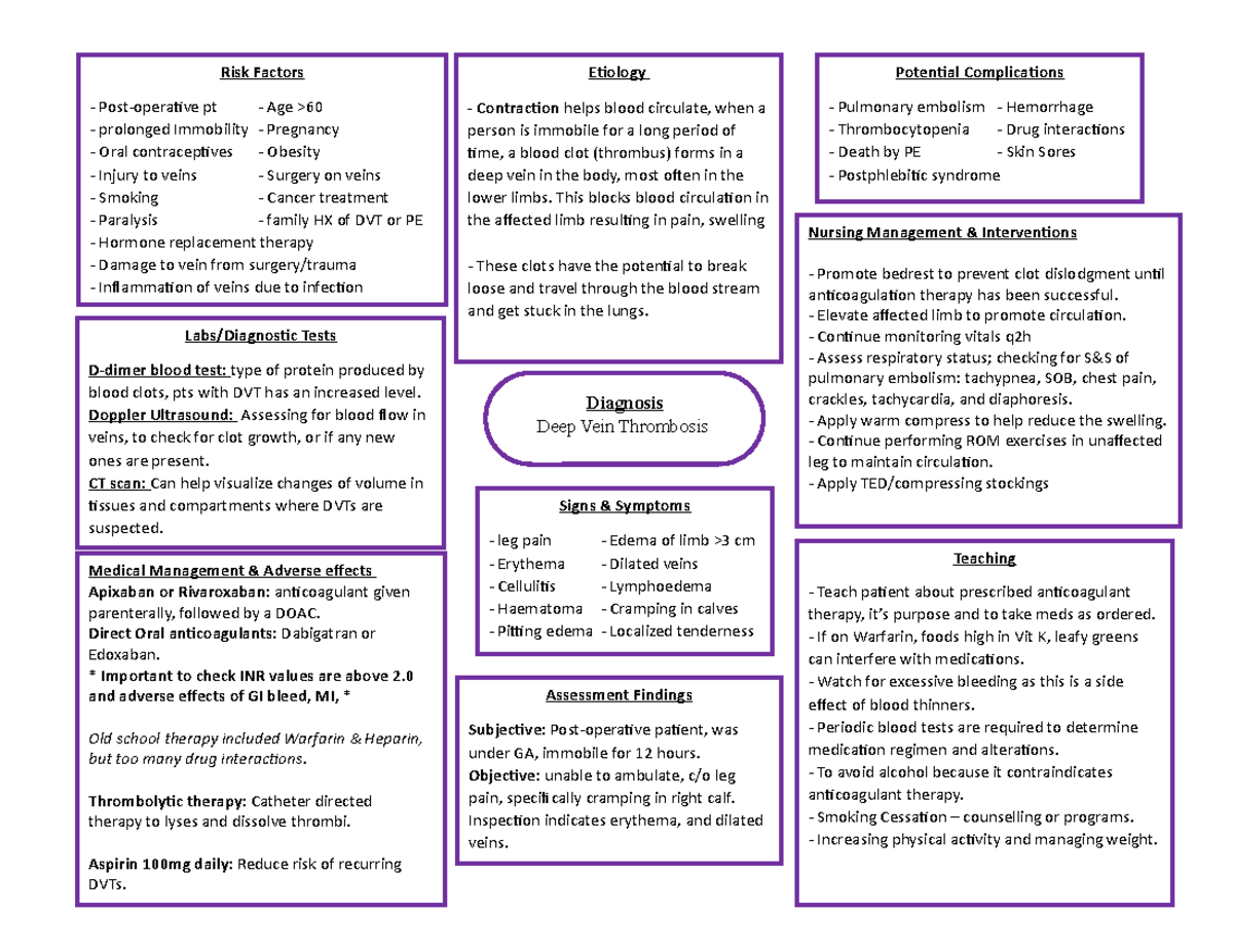 Concept Map DVT.docx Labs & Diagnostic Studies Pathophysiology