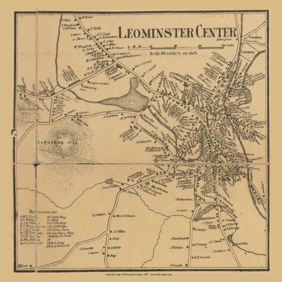 Leominster Center 1857 Old Town Map With Homeowner Names